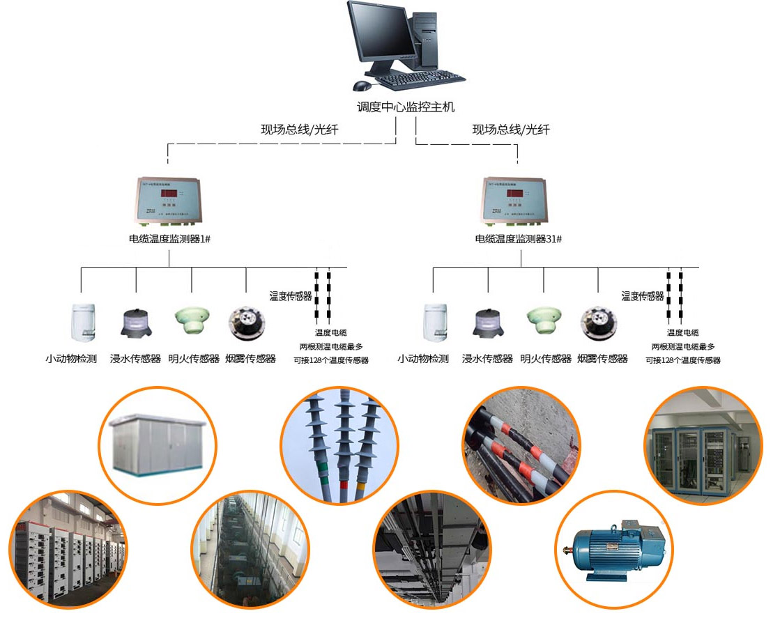 单条总线电缆可支持长达至1000米,单条测温电缆可挂接128个 测温传感器